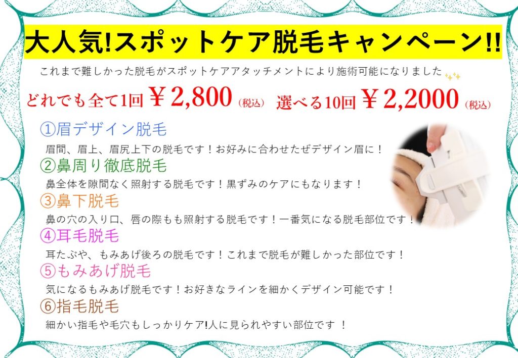 これまで難しかった脱毛がスポットケアアタッチメントにより施術可能になりました![]()